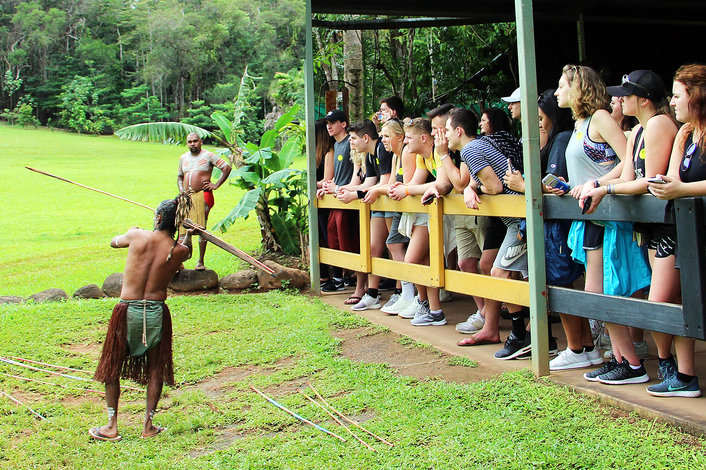 Learn about indigenous culture with the interactive Pamagirri Aboriginal Experience. Watch a traditional dance performance in a rainforest amphitheatre, then join the Dreamtime Walk which includes boomerang throwing, spear-throwing and didgeridoo playing.