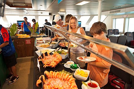 - Hot and cold buffet lunch with seafood, afternoon tea, on-board Wi-Fi access, free introductory snorkelling demonstration provided by a qualified instructor, glass bottom boat and semi-submersible coral viewing tours, touch some of the reef’s unique marine creatures in the marine touch tank, onboard reef ecology presentation by marine naturalist, children can enjoy the safety of the fully enclosed children’s wading pool, all snorkelling equipment including stinger suits provided and one Seawalker Helmet Dive.