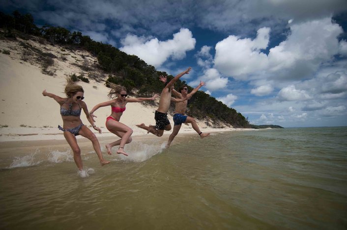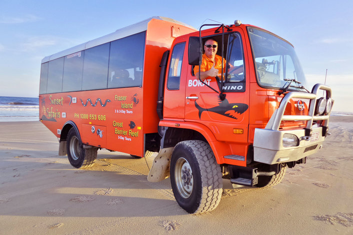 Fully Guided Tour, 4WD bus transport on the Island, picnic lunch on the beach. Transfers from Brisbane are included, and may be added as optional extras for the Gold Coast.