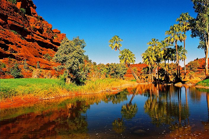 then journey along the ancient Finke River bed to Palm Valley for morning tea.Travel along the Ancient Finke River to explore the relict palms and cycads of spectacular Cycad Gorge and Palm Valley.