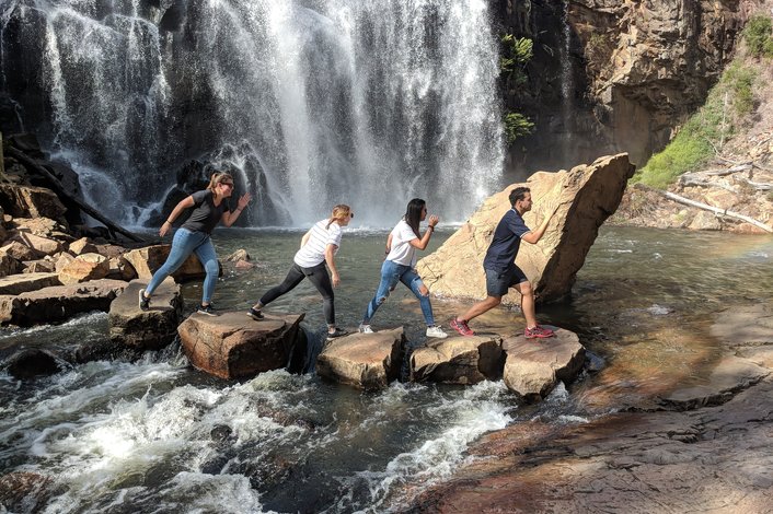 We enter the Grampians National Park in the afternoon, where we visit the Brambuk Cultural Centre to learn about local Aboriginal history, before taking a walk to Mackenzie Waterfalls. Before sunset when the local wildlife come out to play, such as wallabies, kangaroos and kookaburras, we walk to The Balconies, Boroka or Reeds Lookout which all provide a magnificent viewpoint and photo opportunity of the surrounding ranges and valleys. Tonight, we sleep in shared wooden cabin accommodation, with the mountains towering around us.